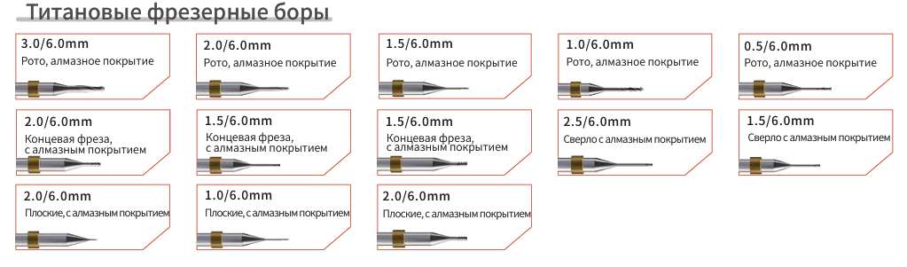Материалы для фрезерования: Me (Ti(титан), CoCr(кобальтхром))