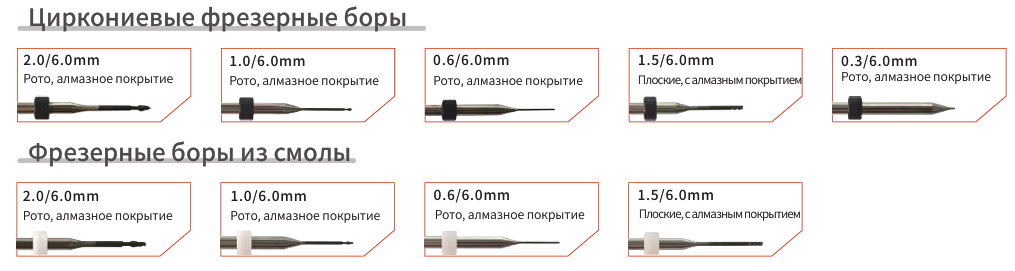 Список обрабатываемых материалов впечатляет своим разнообразием: • воск, • диоксид циркония (циркон), • полиметилметакрилат (PMMA), • титан, • премиллы, • сплавы кобальта-хрома (Co-Cr) • стеклокерамика, • композитные смолы. Это позволяет использовать станок для создания самых разнообразных протезов и ортопедических конструкций.