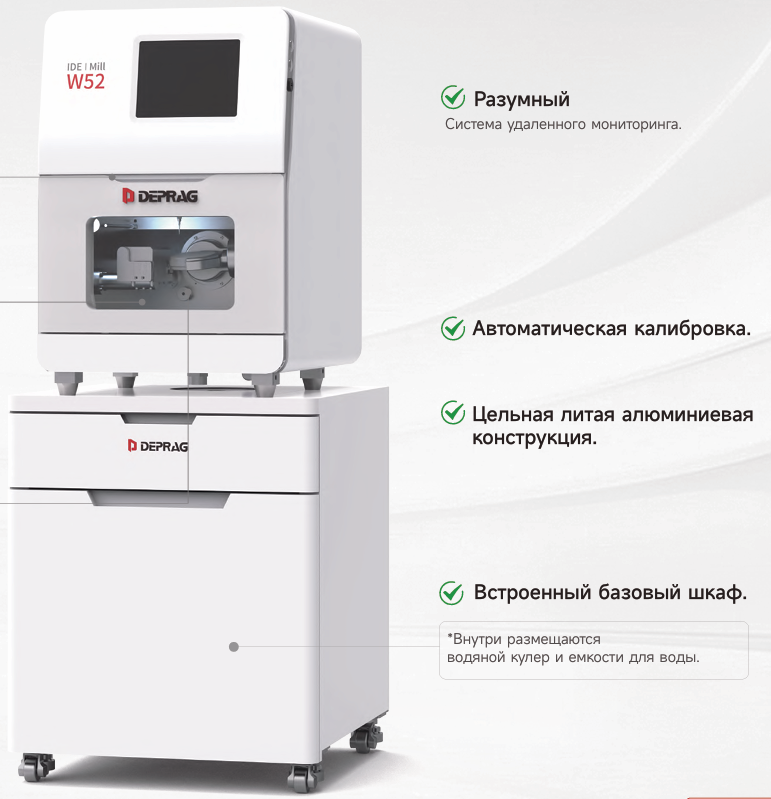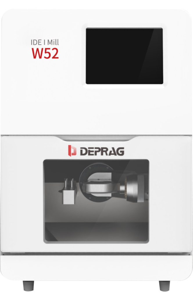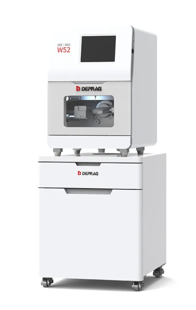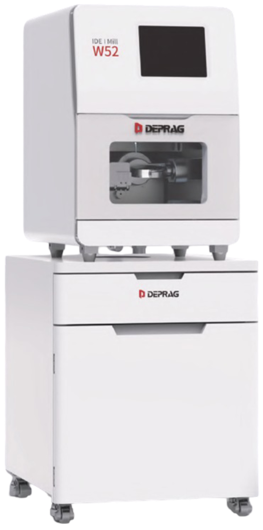 Фрезерный станок Deprag W52, оснащенный удобной тумбой, представляет собой интегрированный фрезерный станок для сухой и влажной обработки, который может выполнять 90% стоматологических операций. Он способен фрезеровать различные материалы, включая титановые диски, предварительно фрезерованные заготовки, стеклокерамику, цирконий и многое другое. Инвестиционные затраты снижаются, поскольку требуется только один станок.