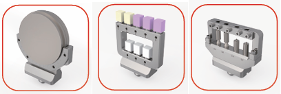 Держатель блока ·Стандартный ·8 положений, подходит для блоков из стеклокерамики, смолы и диоксида циркония ·Доступны блоки из стеклокерамики: I13/C14/C16/B32/B40 ·Размеры блоков из ПММА и диоксида циркония
