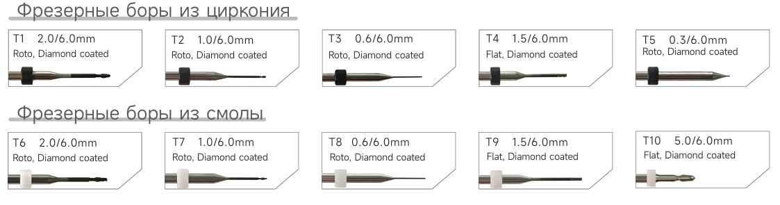 Материалы для фрезерования: Me (Ti(титан), CoCr(кобальтхром))